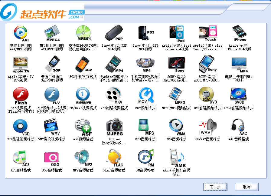 3、选择视频后,其自动弹出了如下的选择转换格式,用户可以根据您的需要选择。
