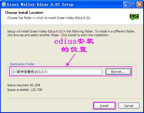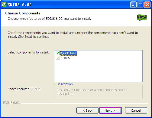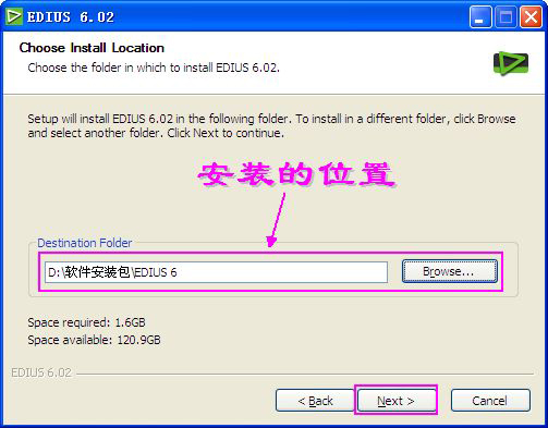 这里要注意了,要选择之前安装EDIUS的位置,否则会导致无法安装,或是软件无法正常运行等情况,这就是之前我让大家记住软件安装位置的原因啦,然后进入下一步。