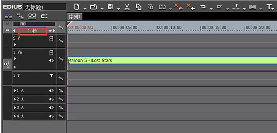 1、首先将一个素材拖到EDIUS时间线轨道上,小编用的是一个音乐素材,默认情况下,素材显示长度单位是1秒,这样4分钟的音频素材时间线就被拖的很长,编辑起来一直向后拖动很不方便。