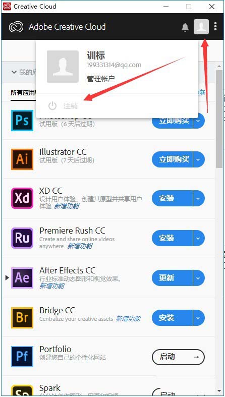 6、补丁替换之后,我们打开cloud云工具,把账号直接给注销了,然后我们就可以无限用软件了。
