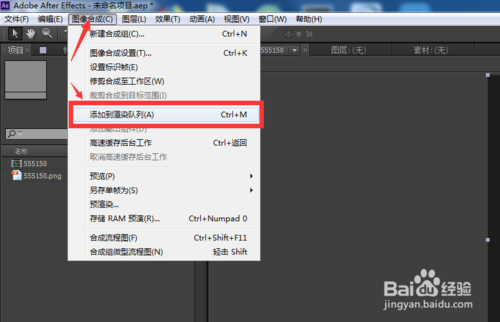 4、视频剪辑完毕,然后,顺序点:导出,添加到渲染队列;调出渲染面板,渲染视频到指定的文件夹。