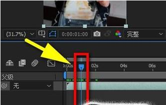 2、下面对此视频进行剪辑。比如,要把视频前面1秒这一段删除掉。鼠标移到时间线这里,点住播放头,向右边移,移到视频1秒的位置上。