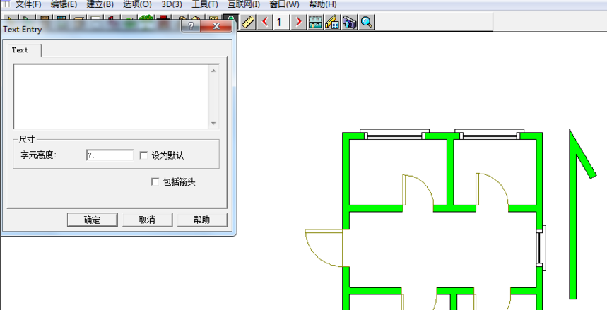 而且在(建立)选项中有窗户的以及门的选择,大家在画好墙体后,直接点击门窗按钮,然后将鼠标移动到画的的墙体上点击一下即可。画门时如果想要有方向的差别,可以在画好门之后,将鼠标移动到门中间位置点击鼠标左键并往一个方向拖拽。最后记得写一下标注,点击A这个图标,即可写字。