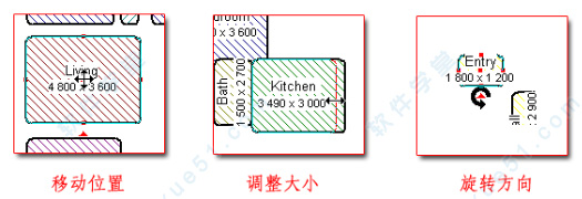 一、3dhome如何调整房间?编辑区中各种颜色的方块就是各种房间。单击任意一方块,可以对其进行移动、调整大小及旋转操作,在调整过程中房间的相应参数如长宽等都可以显示出来,你可以按自己的需要进行调整。如下图所示: