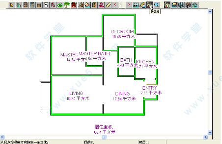 新建一个空白文档( 菜单栏:文件>新建),就开始绘制户型图了工具栏介绍