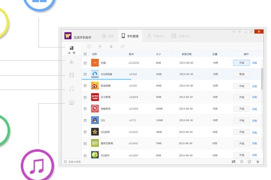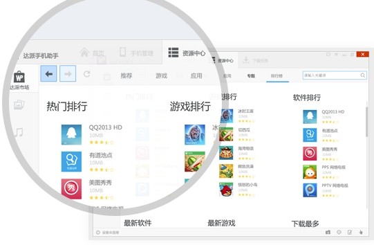 达派手机助手是史上最强大的win phone的手机助手。达派手机助手功能强大,支持多媒体导入导出,一键解锁,云推送安装应用,云端同步等功能,还有海量资源供用户下载。达派手机助手是您个性化爱机的必备软件。