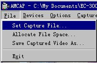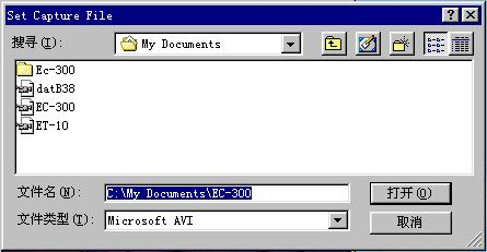 1、在"AMCAP"的画面下,先用滑鼠点选"File",再点选"SetCaptureFile"设定录影档名,设定档名".avi",点选"开启"后,点选"OK"。