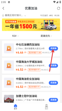 3、于优惠加油界面,挑选目标加油站,点击“去加油”选项,随即进入加油站详情界面。