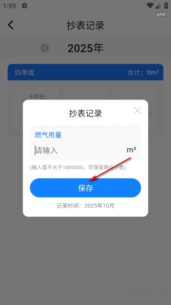 请输入用气量,然后点击【保存】按钮。
