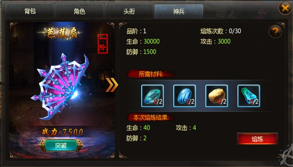 d神兵突破成功后,可提升神兵等阶,神兵等阶越高则神兵可熔炼的次数上限也随之提升