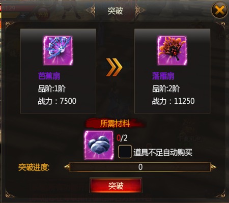 神兵突破界面,幸运值越高则当次突破时成功概率越高