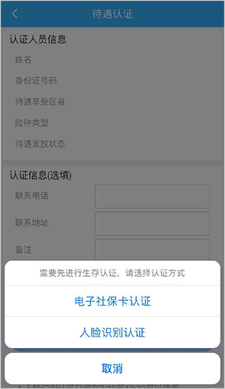 6、接下来点击人脸识别认证(若认证方式选择“电子社保卡认证”,则需先申领电子社保卡)