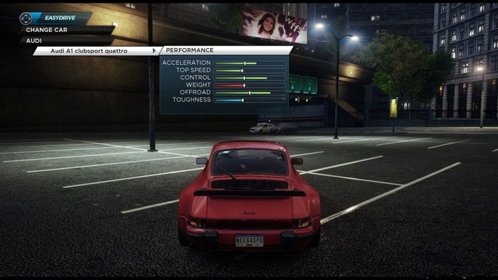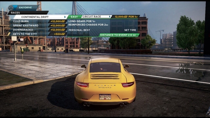 游戏中的界面,(easydrive)叫开车易,集成了包括Autolog、改装、联机、比赛、更换车辆和最高通缉比赛。