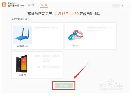 7、最后只需要等待小米手机抢购时间的到来,届时可以进入此页面,点击“自动抢购”按钮,就可以利用“抢小米神器”帮我们抢购小米手机啦。