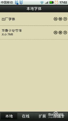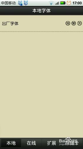 在本地选项卡中会出现“出厂字体”的默认设置,也就是说,在手机上目前可用的字体,也就只有出厂字体一个: