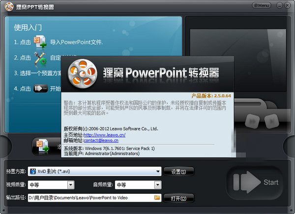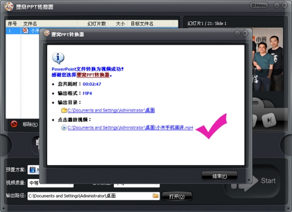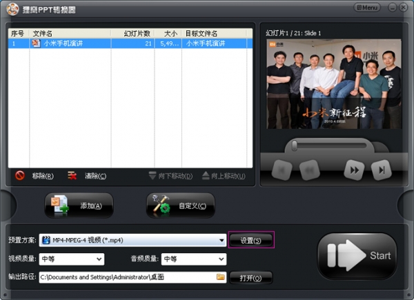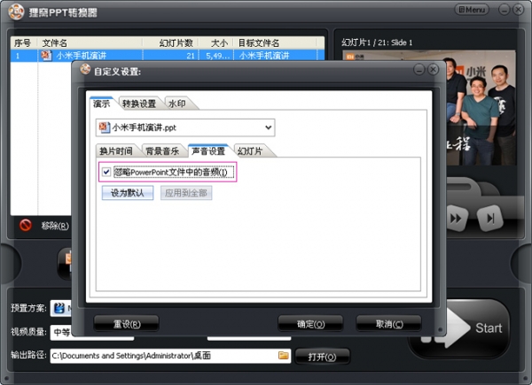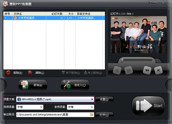 狸窝ppt转换器是将powerPoint转换成视频格式的工具。输入PPT文件即可输出格式为avi、wmv、mpeg、flv、mp4、vob、3gp、3g2、mov、ipod、iphone、psp、pmp、等的流行视频格式。ppt预览是什么效果,比如添加动态图片,设置动画效果,转换视频就是什么效果!动态图片依然有效。