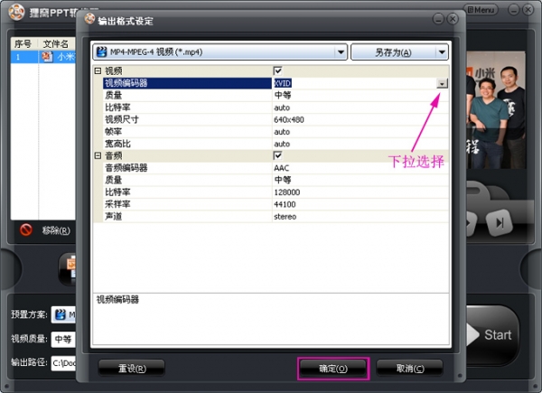 转换视频格式的参数设置: