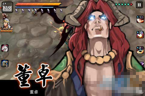 boss董卓的技能很变态,全部都是范围超级大的群攻技能!玩家只有通过放技能,上马或者特殊攻击进行躲避boss的技能(骑老鹰也行,小编一直没有曲玉升级老鹰),因为只要碰上一点,差不多你就会挂掉!一般满血情况可能还会剩一点!