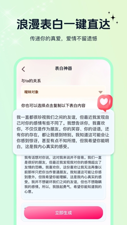 2. 一键开启浪漫表白,瞬间直达心意,让真爱毫无保留地传递,让爱情不再留有遗憾。