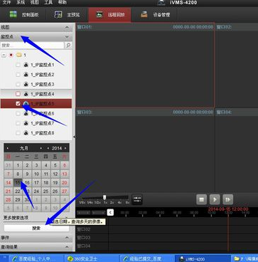 3.远程回放录像,选控制面板远程回放。选择监控点查看录像时间点搜索。