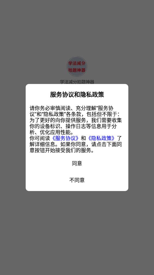 1. 安装软件完毕后打开,同意服务协议与隐私政策。