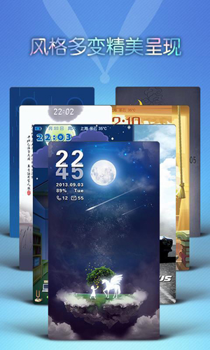锁屏精灵是国内最著名的手机主题锁屏软件。涵盖海量美丽资源,提供下载。支持趣味解锁、丰富场景、快捷功能、酷炫动画。锁屏精灵安卓版简单中包含个性,个性中蕴藏神秘,是安卓锁屏软件中的上品之作。