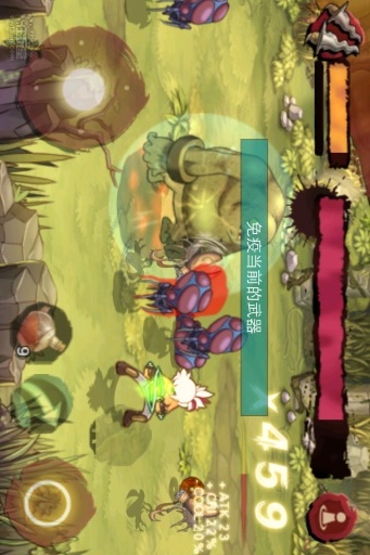 【操作】游戏的操作是司空见惯的左右虚拟按键,左键控制方向,右键控制攻击,快捷技能和道具则排列在右边。本作的操作手感可以说相当令人满意,人物移动流畅迅速,攻击也没有半分拖慢。不过唯一美中不足的是本作是横版动作类型,所以攻击只有前后两个方向之分,搓惯了八方向摇杆的同学会有些不习惯。