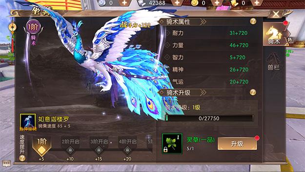 坐骑分为马、虎、蝎、象、龙五个物种,在游戏中,也有一些不属于这五个物种稀有的坐骑,等着玩家去探索。