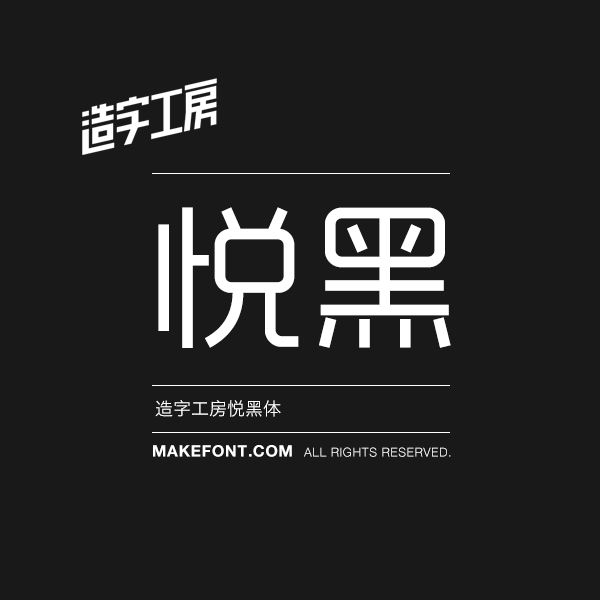 造字工房悦黑系列字体笔画设计自然美观,字形简约,曲线优美,具有较大范围的应用空间。适用于高端时尚品牌产品的形象设计与推广。本系列字体共九款,为简体字库,采用OpenType/CID 格式, Adobe-GB1-5编码。基于中华人民共和国GB2312-80字符集标准, 另按需添加了 103 个汉字。共收容字数 6866 CJK 汉字,ASCII常用字符100个。
