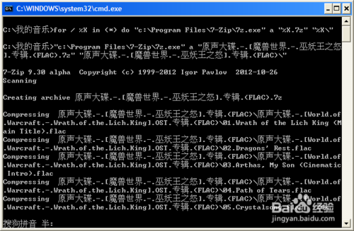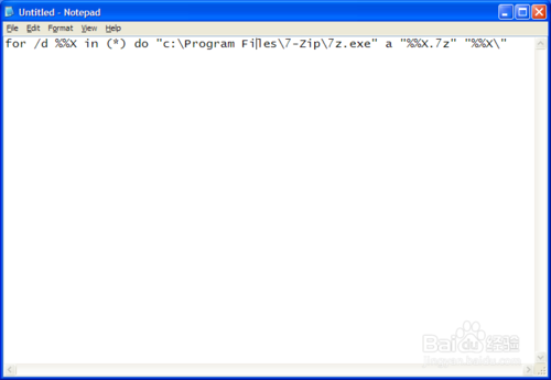 注意,我们在2~8步完成的批处理文件应该和我们要压缩的那些文件夹处在同一个目录,且该目录下除了我们要压缩的那些文件夹和批处理文件外,没有其他多余的文件或文件夹。
