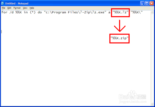 如果你需要把文件打包成ZIP格式的话,把 "%%X.7z" 改成 "%%X.zip"