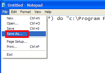 点击记事本程序菜单栏的“文件”,然后选择:“另存为”。