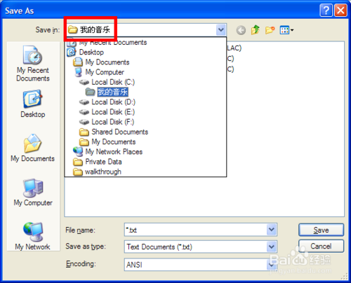 在本经验所举的例子中,位置是“C:\我的音乐”。