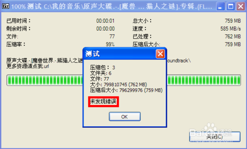 测试完毕后如果报告说“未发现错误”,就可以把压缩好的那些压缩文件包复制到移动硬盘里边去了。我们做好的批处理文件可以删除掉,或者保存起来以备日后所需。
