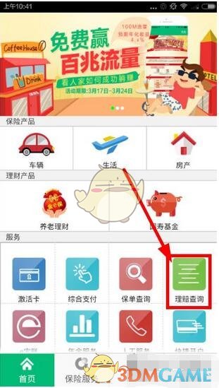 注册并登录后,打开国寿掌上保险app,在首页的服务区里点击理赔查询。