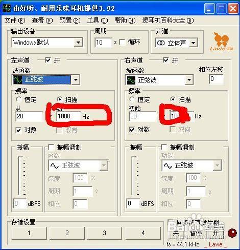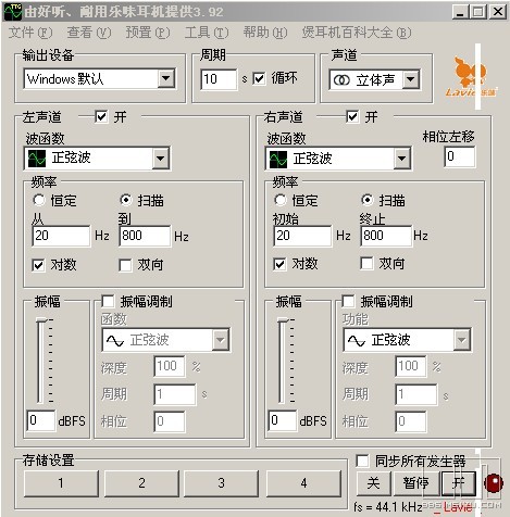 2、下面3个图是常用的低中高音煲机的设置。一般采用立体声正弦波