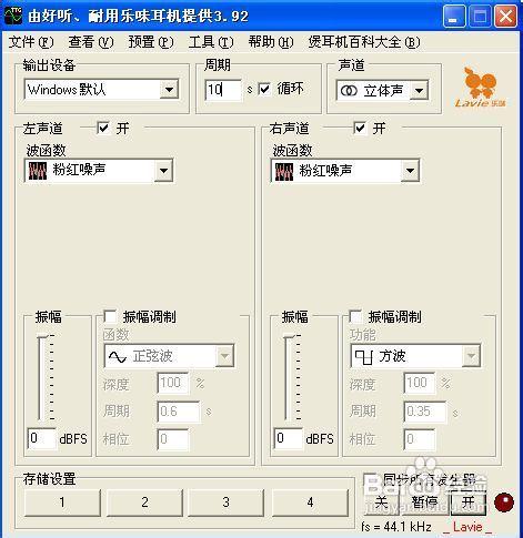 5、另外还介绍一种用粉红噪声煲机的方式,设置如图。这种噪音就是那种沙沙声无规律。声音设置也如上面的方法,也是按上面的方法试听。然后决定是不是继续煲机,直至声音打开。