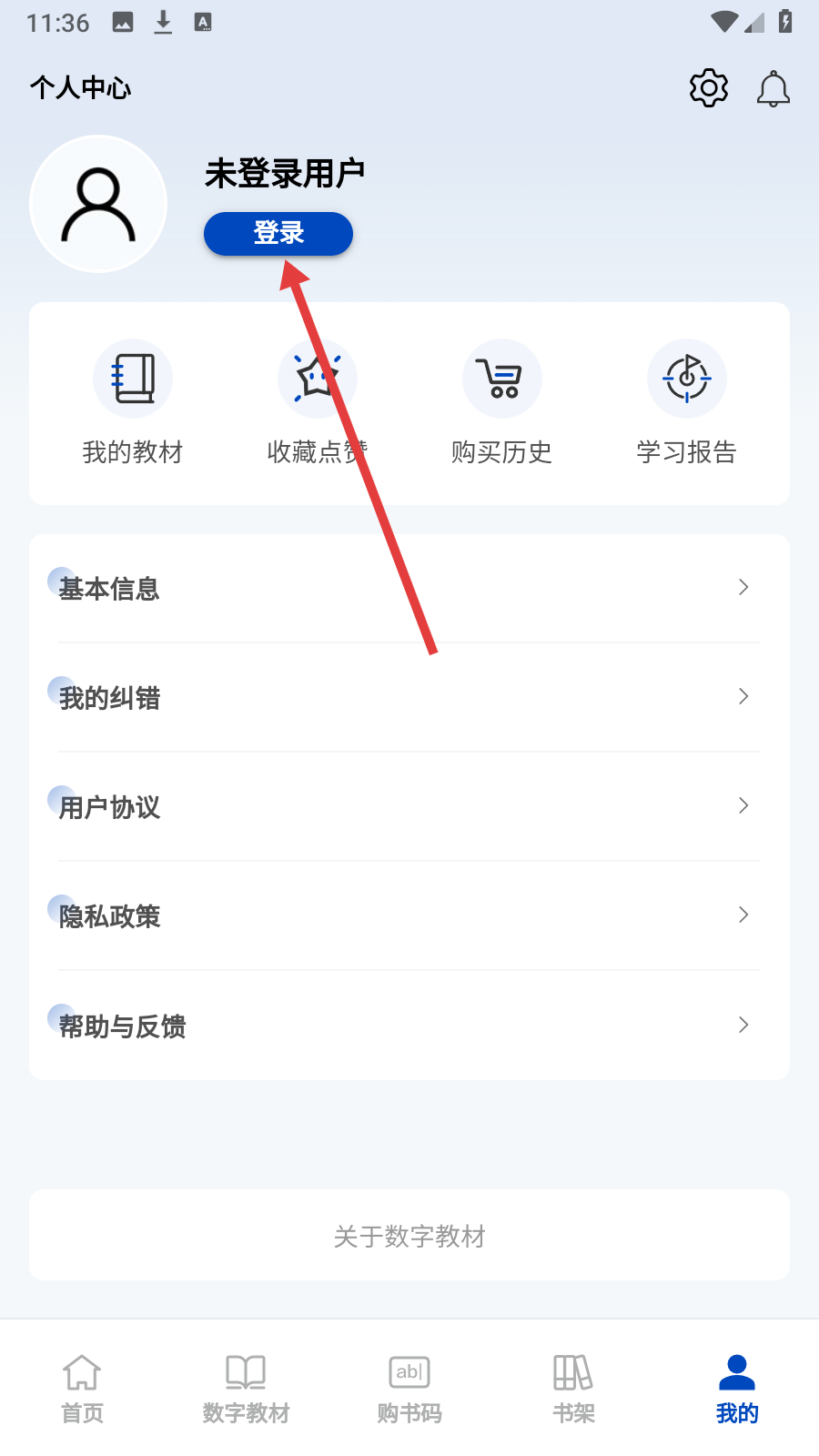 2. 于个人中心点击【登录】选项,随即进入登录引导界面。