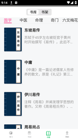 6、该软件具备书籍功能,通过它能够查阅各类如《易传》《易经》等国学书籍,助力用户学习。