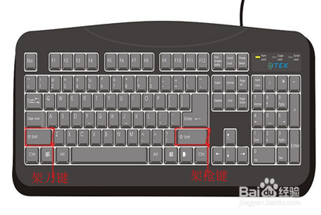 左SHIFT(架刀键);右SHIFT(架枪键)。我们要举刀或者举枪就要按住它。