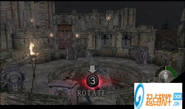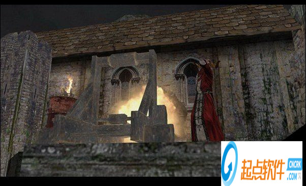 进入城堡在楼下可找到武器商人,建议买一支狙击步枪来用,用旁边的打字机存档。上楼梯推门来到城堡外部的围墙,先用步枪将高处的两名巡逻教徒狙掉,转上旋梯让Ashley待命,前方会遇到4台投石车的轰击,用狙击步枪分别将它们旁边的油桶击爆,或者将操作投石机的教徒狙杀。上层平台有道大门打不开,提示需要火力将它炸开,于是跑到对面的炮楼操作机器将火炮升起来,操纵火炮将那道大门轰开。