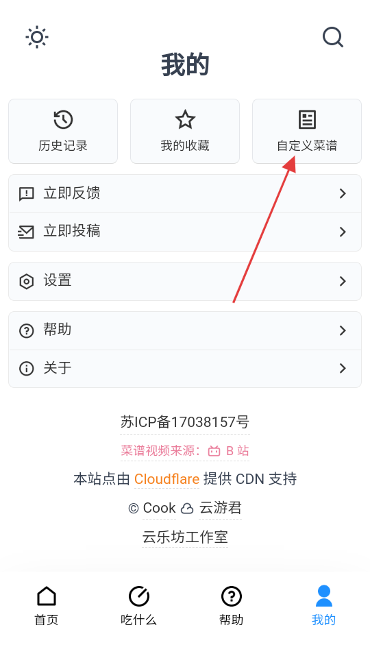 2. 当进入“我的页面”之后,点击“自定义菜谱”功能。