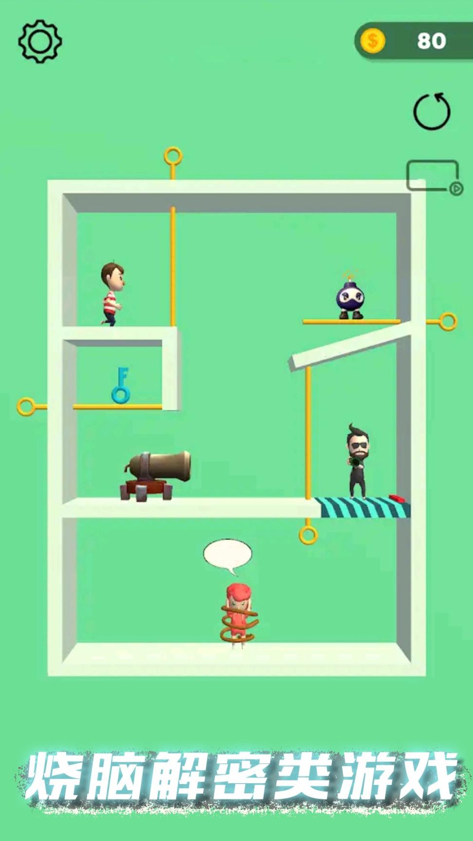 如果您喜欢图钉游戏并想解决有趣的谜题,那么您一定会喜欢拉图钉游戏,作为拥有超强智力的高手,你的目标是根据游戏设定的剧情,尝试各种命令和方法来拔针,躲避炸弹,猎人……最后,帮助男孩逃离危险房间。如何拔出大头针并营救男孩取决于您!