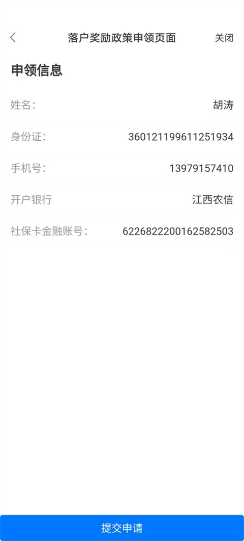 4、确认自己的信息无误之后点击提交申请。