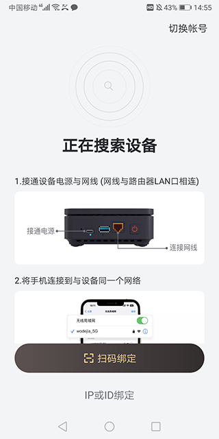 您也可以通过扫描二维码或手动输入设备IP地址来进行绑定。