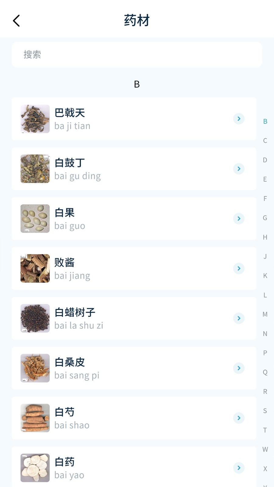 3、药材查询:输入药材名称,获取性味归经等详细资料。