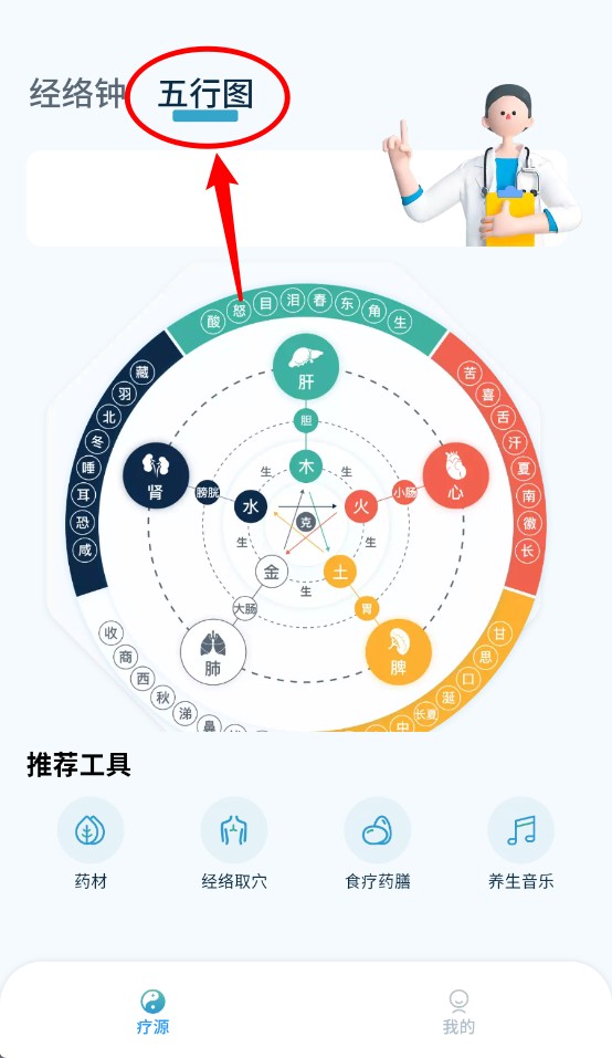 2、查看五行图:了解五行关系,掌握五脏六腑的调养规律。