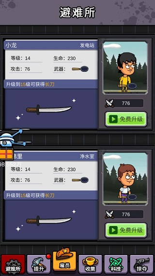 5、收集各类材料,对雇员进行升级,如此一来,哪怕是普通木棍,也能摇身一变成为AK,面对僵尸时战斗起来更加轻松。