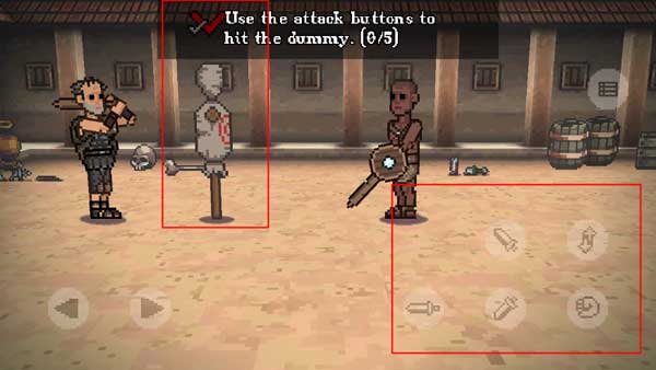 4、接下来便是实际操作,借助剑,通过右边的按钮对木头人发起攻击,攻击结束后,新手教程也就完成了。