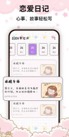 2、动态日历以直观的形式呈现恋爱周期,看着日子一天天过去,累积的天数里,每一个数字都见证着爱情的成长。